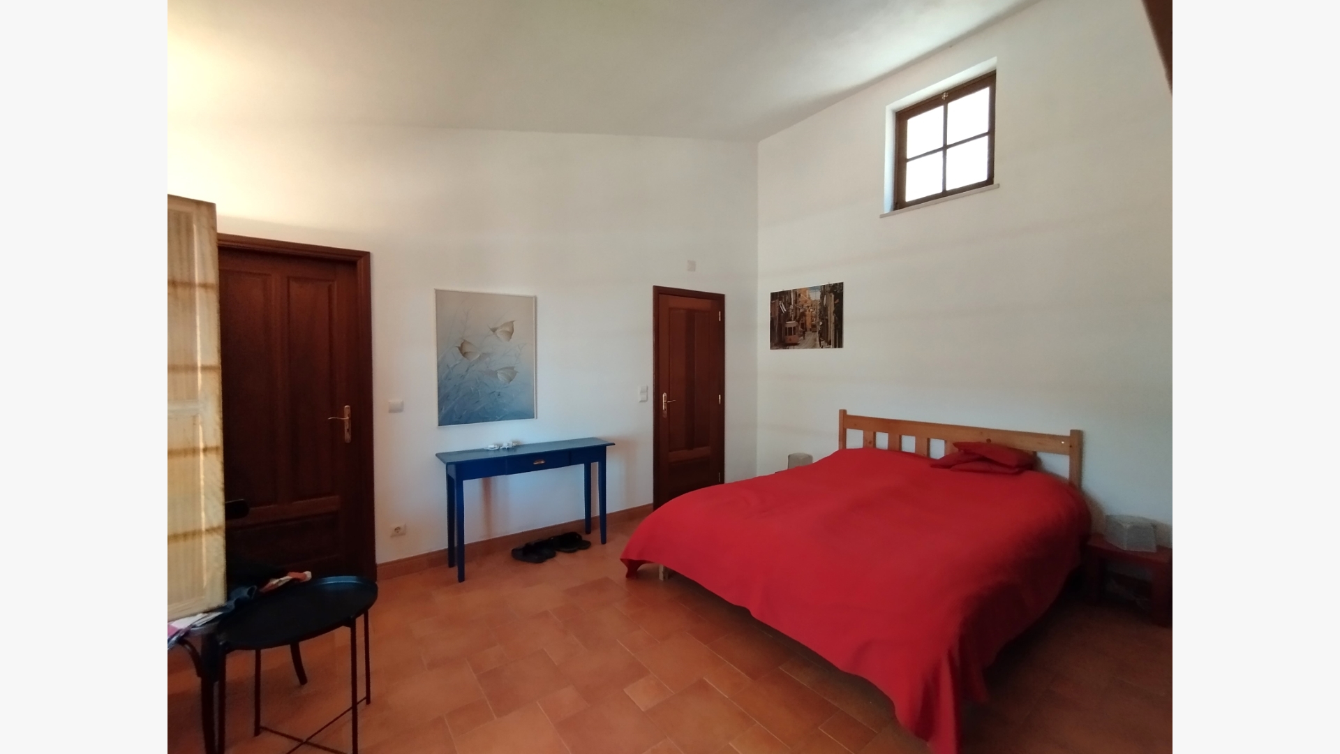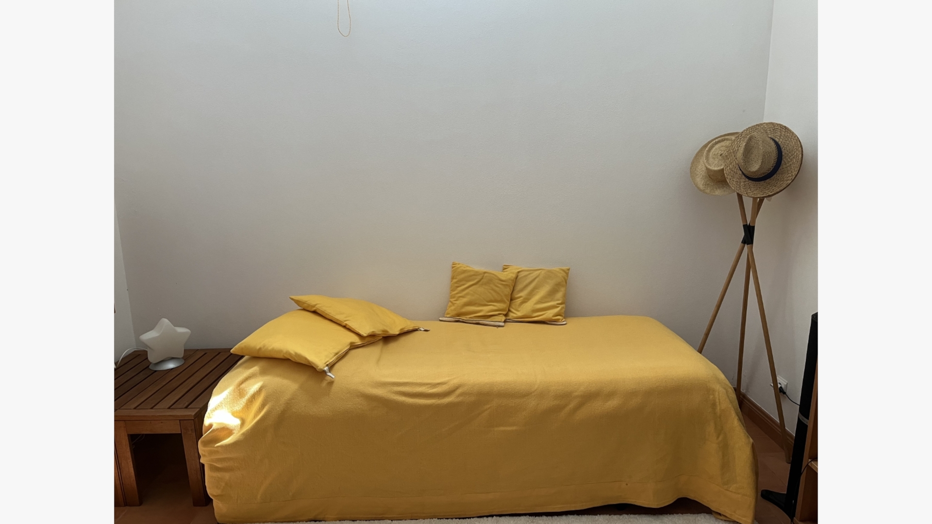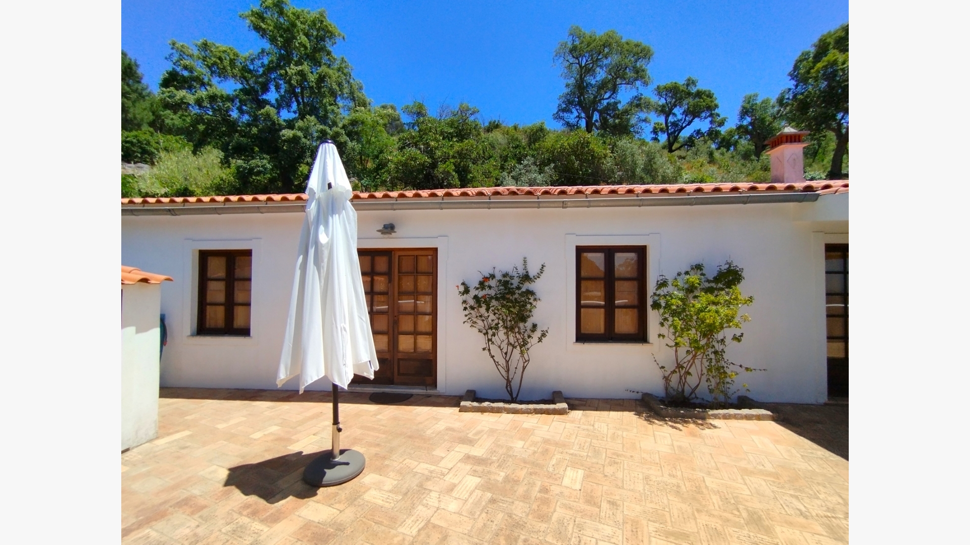 The living room has plenty of windows to let in the natural light and has large doors opening up to the front terrace. It’s heated by a large wood burner for the cooler winter months. The connected kitchen comes fully equipped with a gas stove, oven and the usual amenities. The hallway connects the 3 bedrooms and 2 en-suite bathrooms, all with views and access to the terrace. The large, covered terrace at the front of the house offers superb views of the south coast and the green hills of Palmeiras. It’s a great place to enjoy the peace and quiet and view the local nature. Enclosing this with glass would create an amazing garden room to add to the already ample living space.